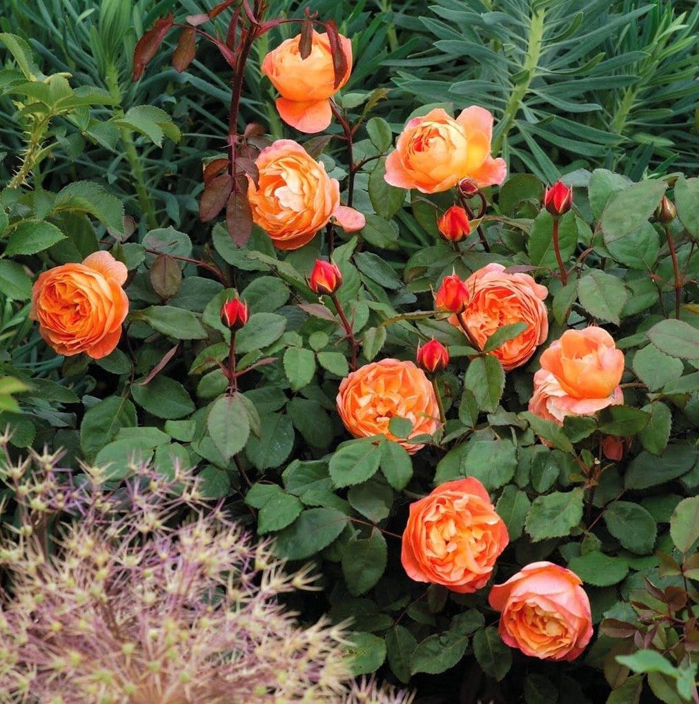 Estamos hablando de un floribunda incomparable que ha recibido el prestigioso galardón RHS Award of Garden Merit. Con capullos en tonos rojo oscuro con toques de naranja, que se abren gradualmente en delicadas flores de color naranja mandarina con bordes amarillos en los pétalos, el “Lady Emma Hamilton” encontrará fácilmente su lugar en tu jardín. Sus flores tienen un perfume intenso y delicioso con notas de pera, uva y cítricos.